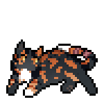 Ratfreckle bore thick, medium length ticked torbie fur, black and bright ginger in color with markings that gave the she-cat her namesake. Her fur was soft but slightly scruffy at the edges, making her tail bushy and somewhat unkempt, despite her efforts in grooming. Ratfreckle also bore a series of noticeable scars long her flank and a very pronounced scar on her tail, a clean slice downward that tore some fur that never grew back due to the nature of such a deep battle wound. Due to her Maine Coon heritage that had travelled as far as her great grandfather, Ratfreckle was on the larger side, her frame was well muscles and fit, even in her days as an elder where her limbs and joints were giving her more harm than good. Her eyes were a dark amber, almost matching rather closely to the ginger freckling her pelt. Lastly, she bore a small white locket on her chest that is hardly noticeable in some positions, but it was there as well as white paws and a white tail tip. |